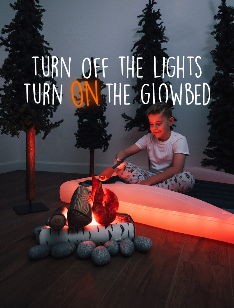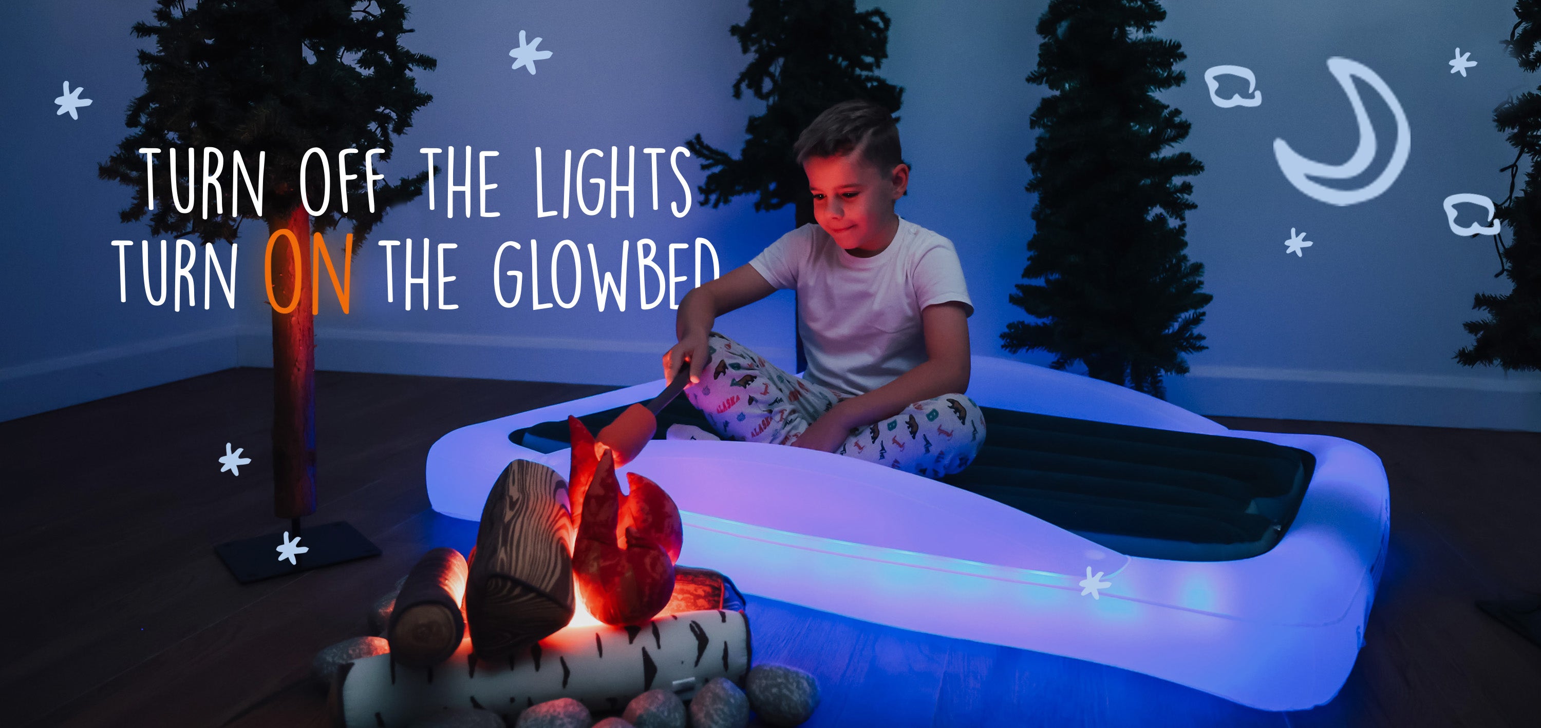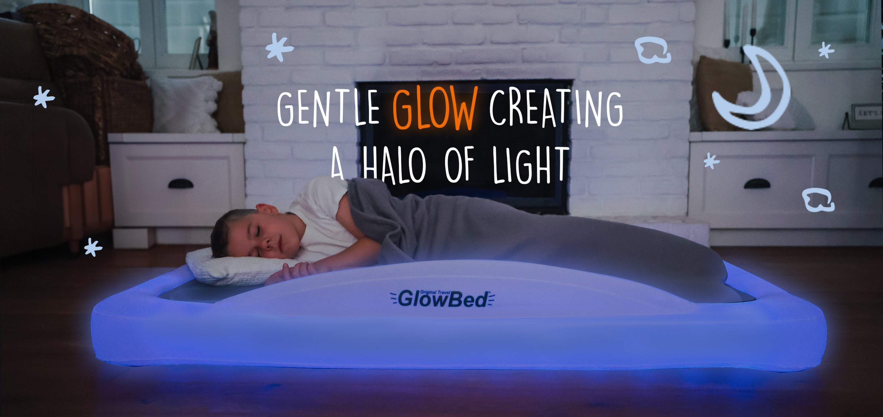 The Dark can be a scary place - especially away from home! But Night time need not be frightening. Turn off the lights and turn on Inflatable GlowBed™. Lightweight and always on hand, with a gentle glow creating a halo of light below the bed - like resting on a soft, floating cloud. Switch Colors - set the Mood - Choose from multiple ambient color options to create a magical, tranquil environment that helps children ease into dreamland peacefully, eliminating the fear of the dark.